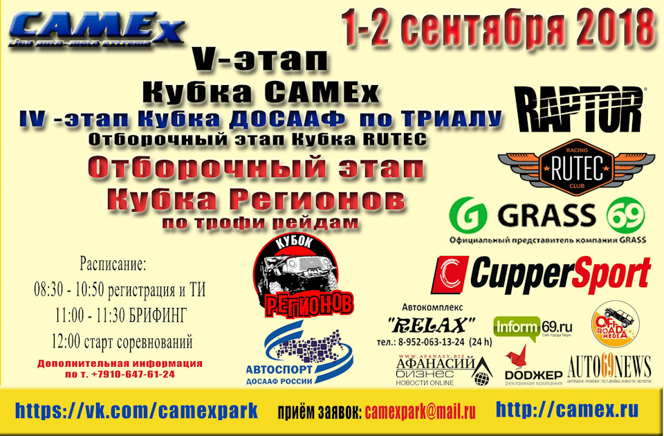 1 и 2 сентября на полигоне автомотоэкстрима CAMEx под Тверью пройдет пятый этап Кубка клуба по трофи-рейдам «Грязный лось», отборочный этап на Кубок Регионов и четвертый этап ДОСААФ по джип-триалу.